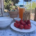 Desfrute de frutas frescas e panquecas servidos no pequeno-almoço no jardim.